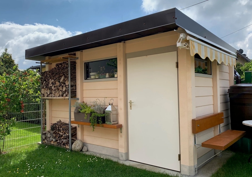 Durch einfachen Selbstausbau kann noch einmal gespart werden, und macht Ihr Gartenhaus auch für den kleinen Geldbeutel erschwinglich. Mit einer guten Isolierung mit dem 3IS Clipsatz wird die Laubemollig warm und kann sogar auch im Winter benutzt werden. Da zahlt sich für Sie die große 3S Erfahrung im Hausbau direkt aus. Im nu ist Ihr Gartenhaus ein kleines Fertighaus. |