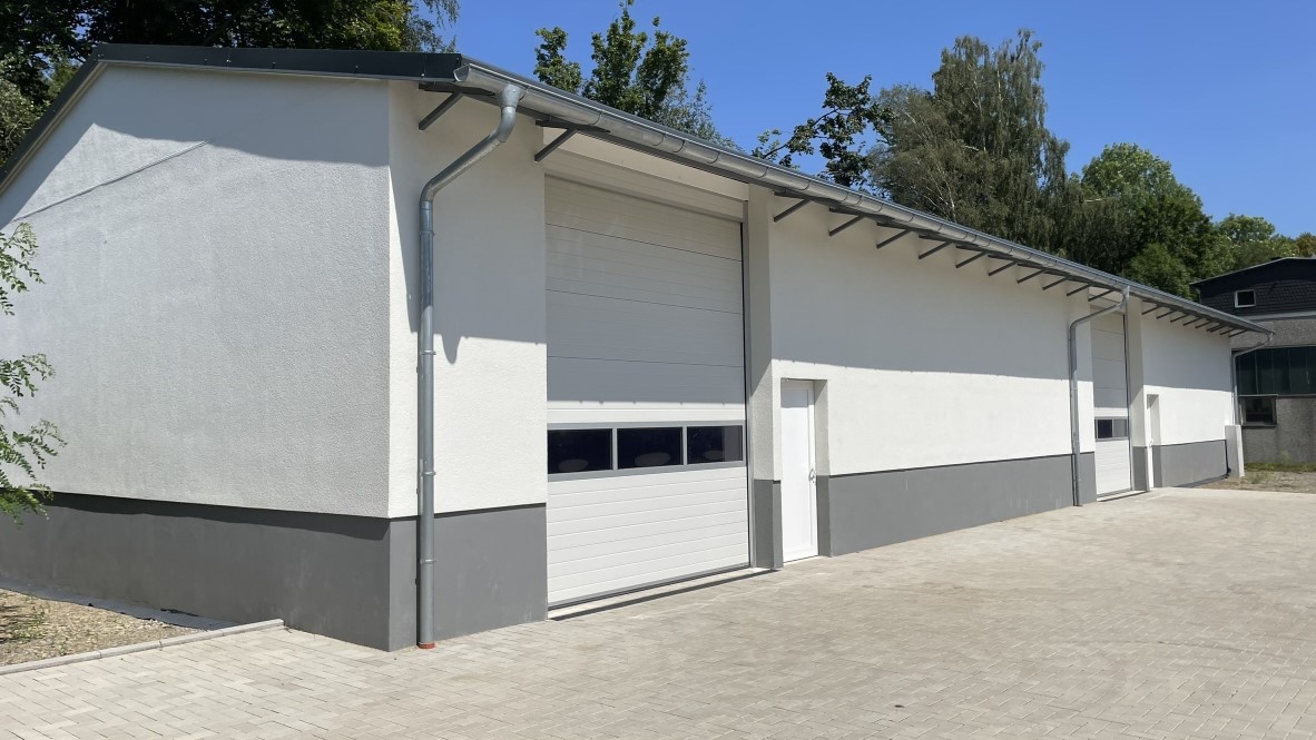 mit moderner Iso-Trapez-Dacheindeckung + Dachentwässerung.
